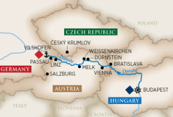 | Itinerary: | Budapest (overnight), Bratislava, Vienna, Weissenkirchen, Melk, Linz, Passau, Vilshofen (overnight). | ||||