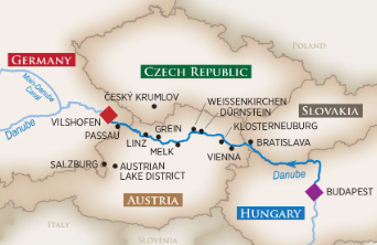 | Itinerary: | Budapest, (overnight), Bratislava, Vienna, Durnstein, Spitz, Linz, Passau, Vilshofen (overnight). | ||||