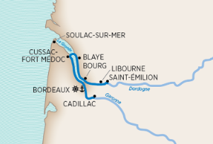 Itinerary: Bordeaux, Libourne (overnight), Blaye, Bourg, Cussac Fort Medoc, Cadillac, Bordeaux (overnight)