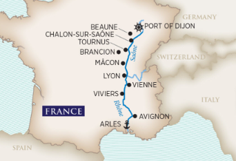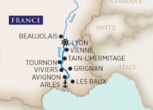 Itinerary: Arles (overnight), Avignon, Viviers, Vienne, Lyon, Macon, Tournus, Chalon-sur-Saone, Port of Dijon.
