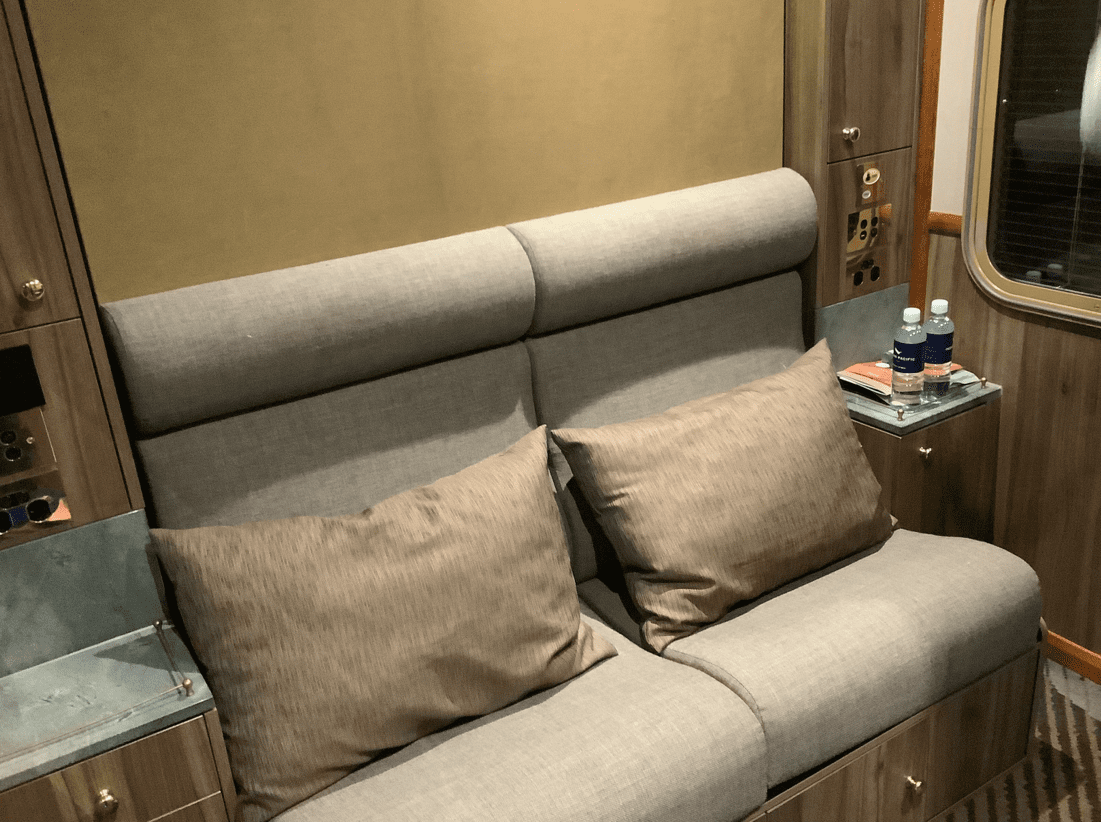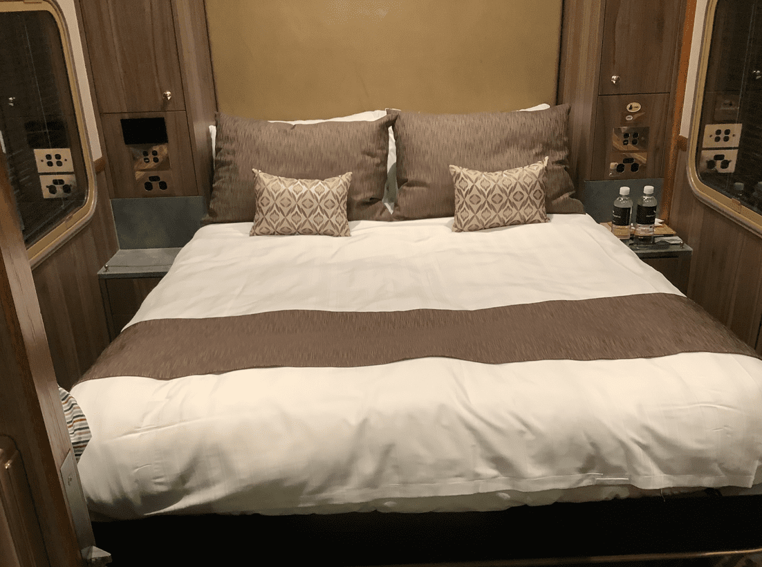 The Platinum Service cabins are much larger (not quite twice the size of the Gold Service cabins) and have either a twin or double bed made up each night. The Platinum Service have their own combined lounge and dining carriage.