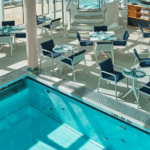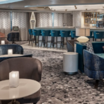 Soft breezes and ocean views beckon at the Grill, especially as the sun goes down when cruise guests gather for cocktails at the outdoor bar and talk about the day’s events.